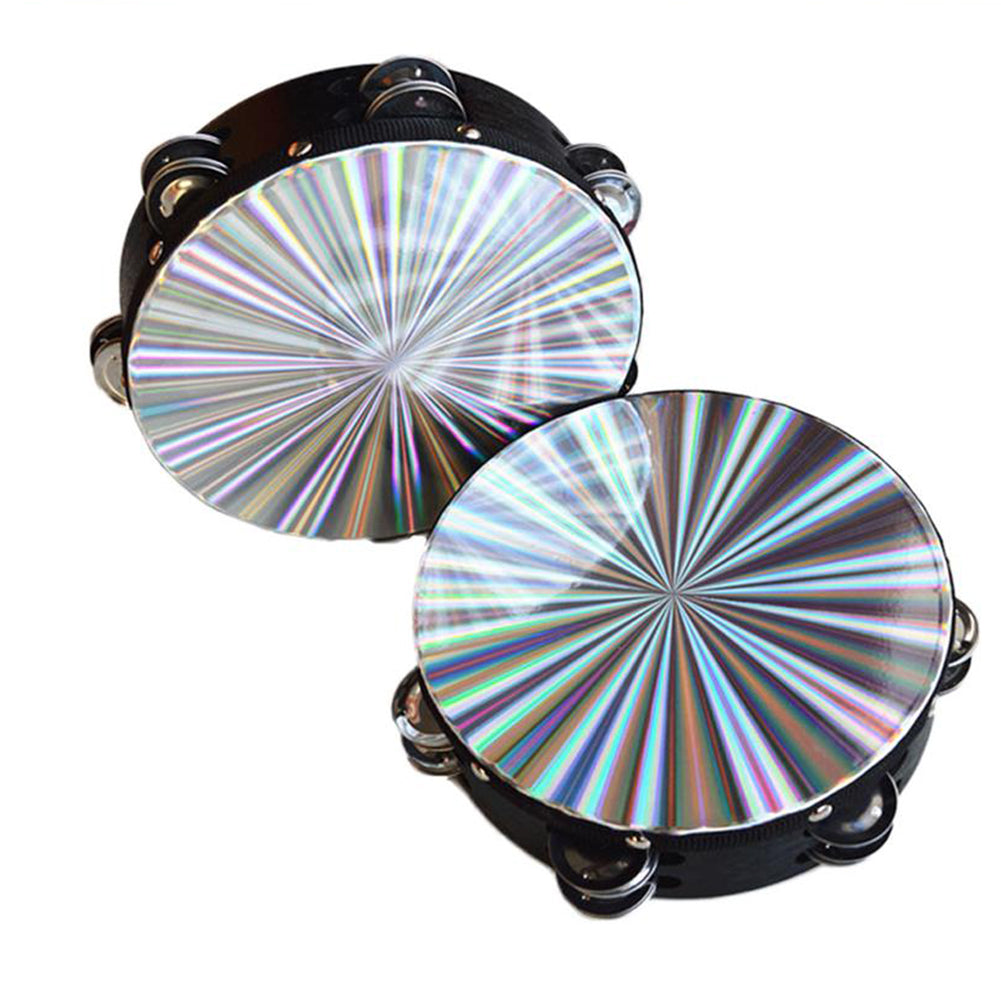 8 Inch Wooden Tambourine Handbell Hand Drum Reflective Drum Head Percussion Instrument Toy black_8 inches