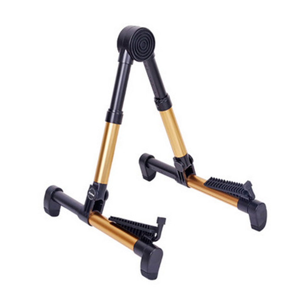 Portable Aluminum Floor Guitar Stand Adjustable Foldable Stand for All Types of Guitars, Basses, Ukuleles and Violins, Banjo Gold_FP10S