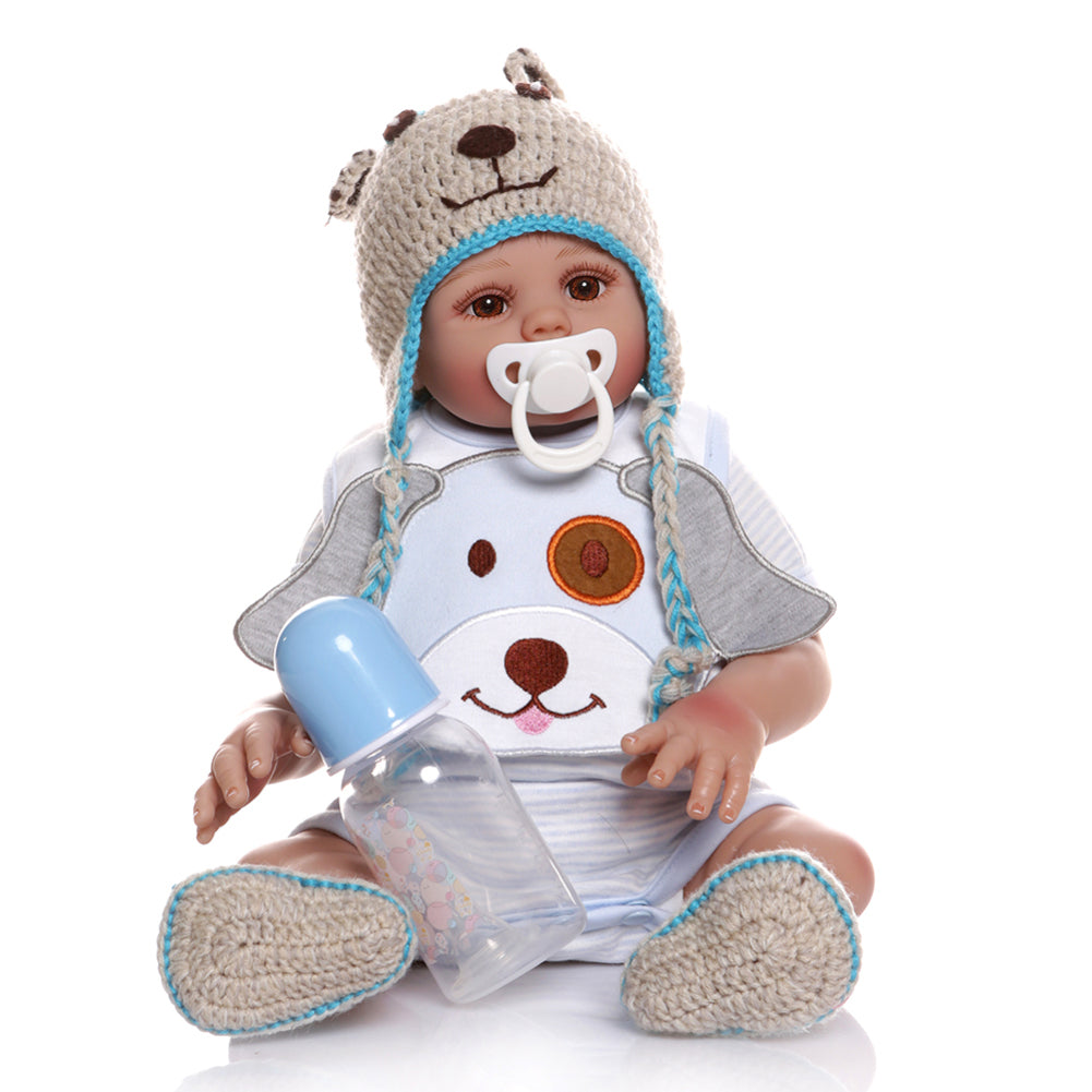 48cm Silicone Doll Reborn Baby Doll In Blue Dress Full Body Soft Silicone Realistic Baby Bath Toy Brown eyes