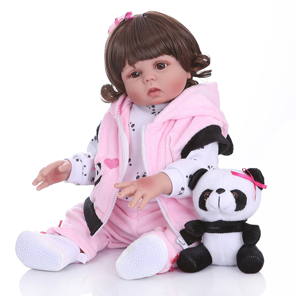 48Cm Simulate Silicone Doll Baby Straight/Curly Hair Realistic Reborn Toddler Doll Baby Bath Toy curls