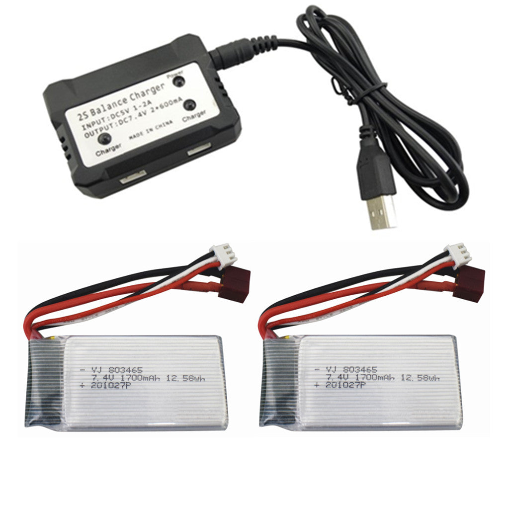 7.4V 1700mah Lithium Battery for 9200 9200E 9205E 9202E 9203E 9204E 9206E 2.4G 1:10 Full Scale RC Car 2PCS battery+2in1 charger