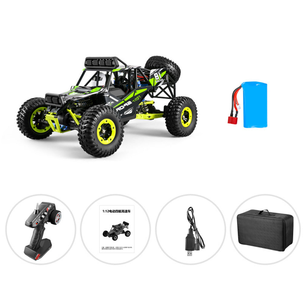 1:12 Off-road Drift Remote Control Car Toy 540 Brush Motor 2.4g Four-wheel Drive High-speed 7.4v Powerful Batteries Vehicle Model Green