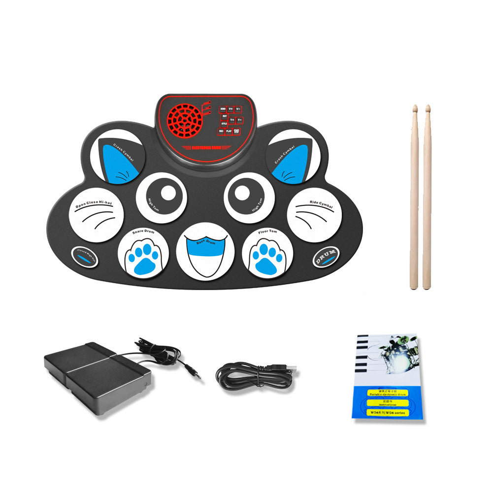 Foldable Roll Up Electronic Drum with Audio Horn Rechargeable Desktop Drum