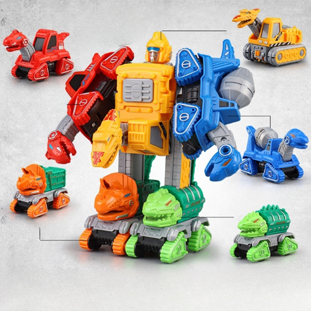 Children Alloy Pull-back Car Cute Dinosaur Engineering Vehicle 5-in-1 Robot Toys For Boys Birthday Gifts As shown