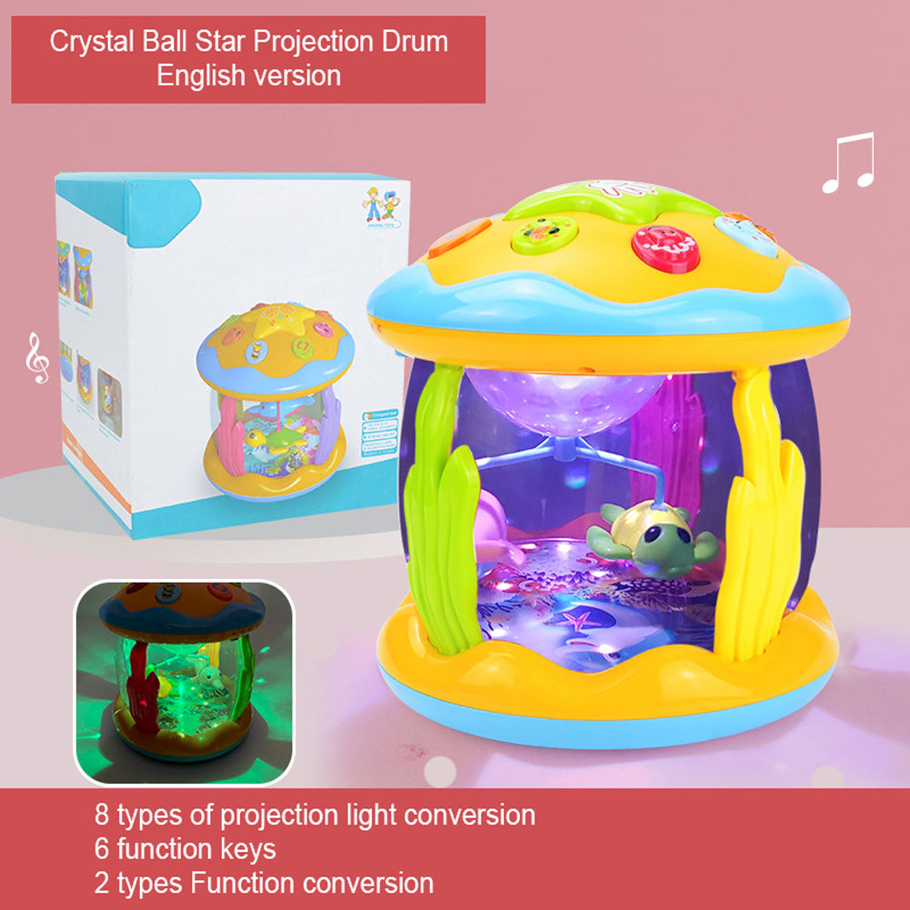 Baby Projection Ocean Drum With Music Light Sensory Toys Early Educational Musical Toys For Boys Girls Random Color Rotating light