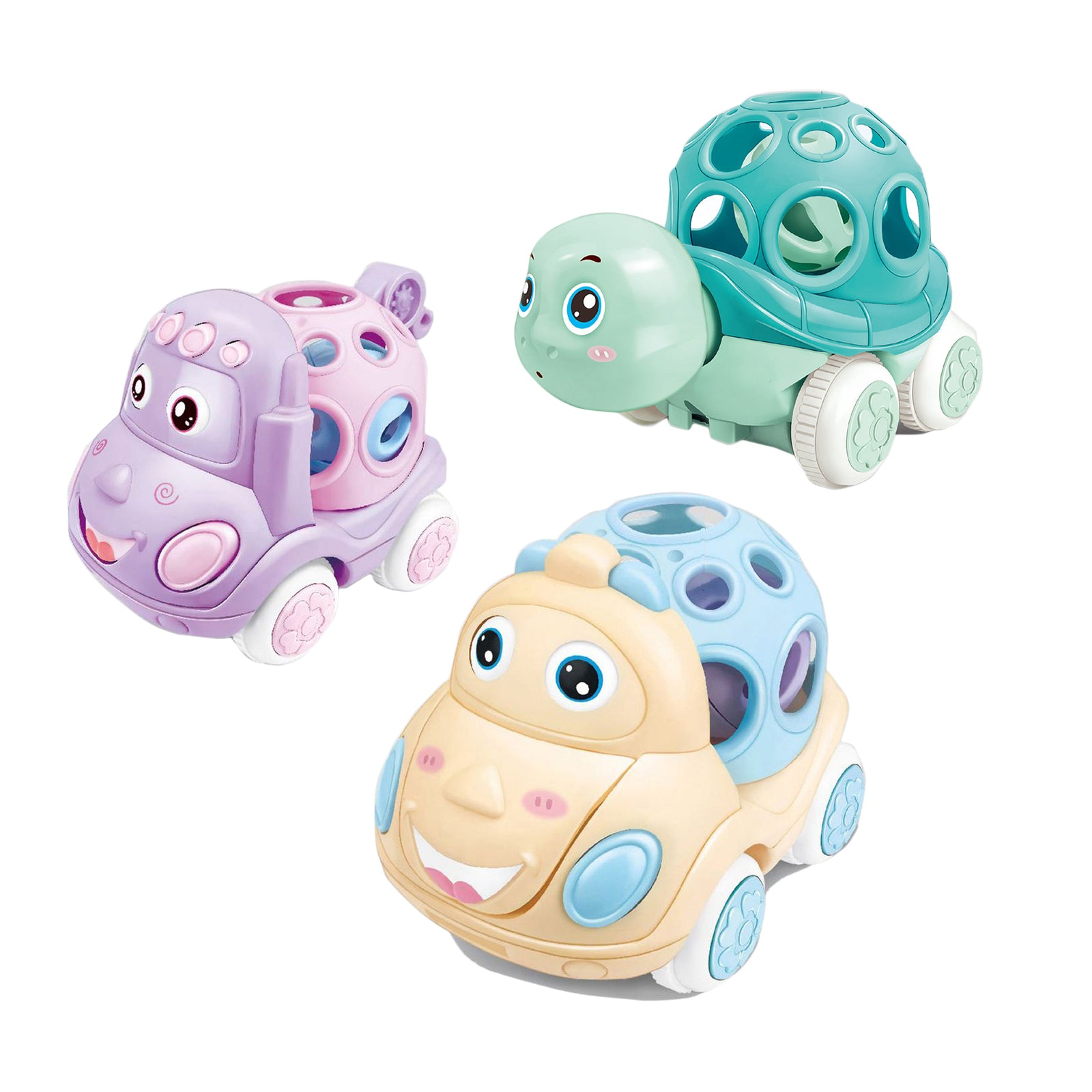 3pcs Baby Cars Toy For Boys Girls Cartoon Animal Inertia Car With Rattles Infant Toys For Birthday Gifts 3 pack
