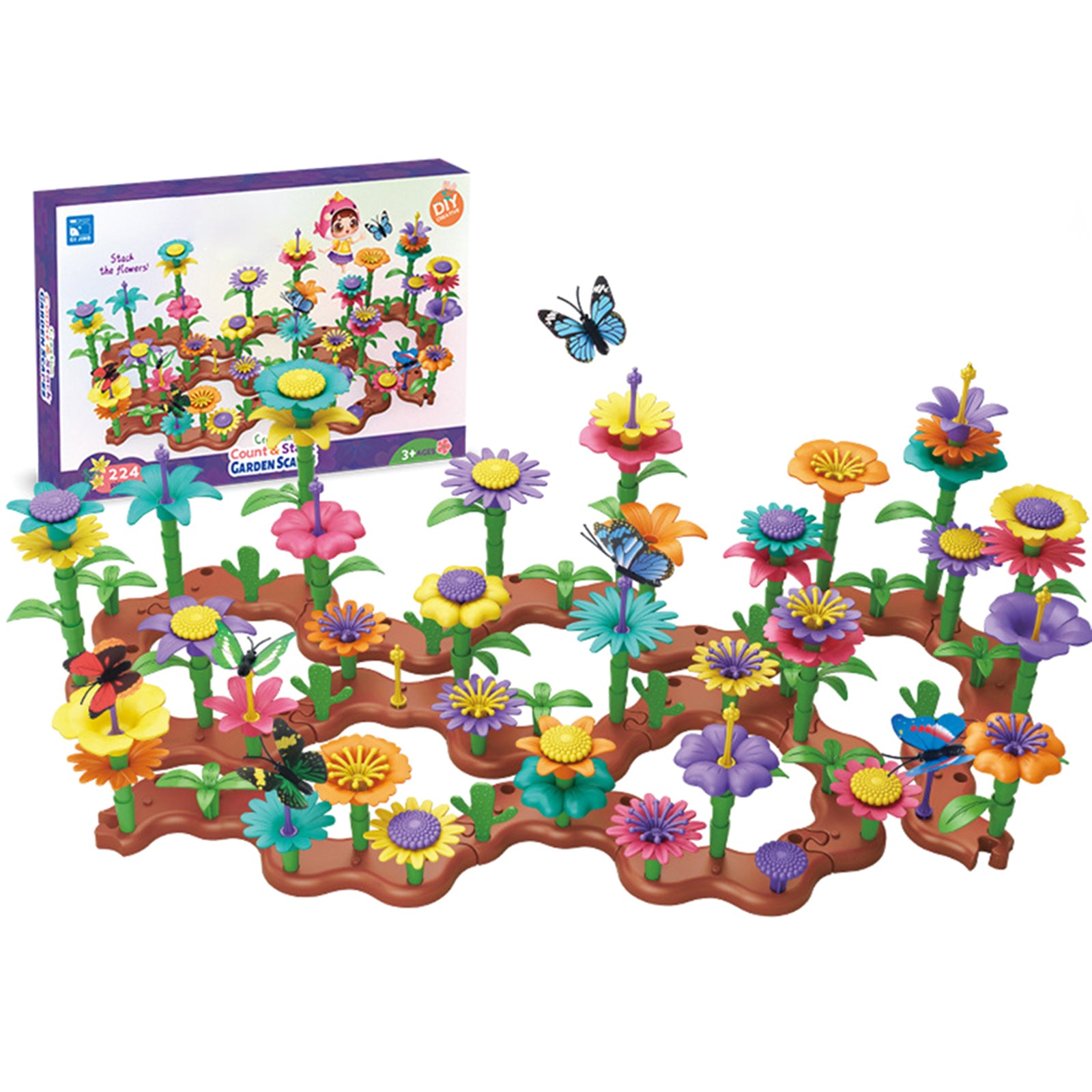 Flower Garden Building Toys Colorful Interconnecting Blocks Building Floral Arrangement Playset Toys For Kids 224 piece sets