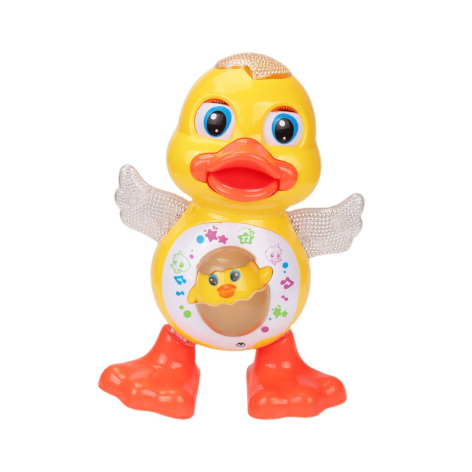 - --Function: Our swinging duck's eyes and hands can swing up and down, and both feet can walk left and right