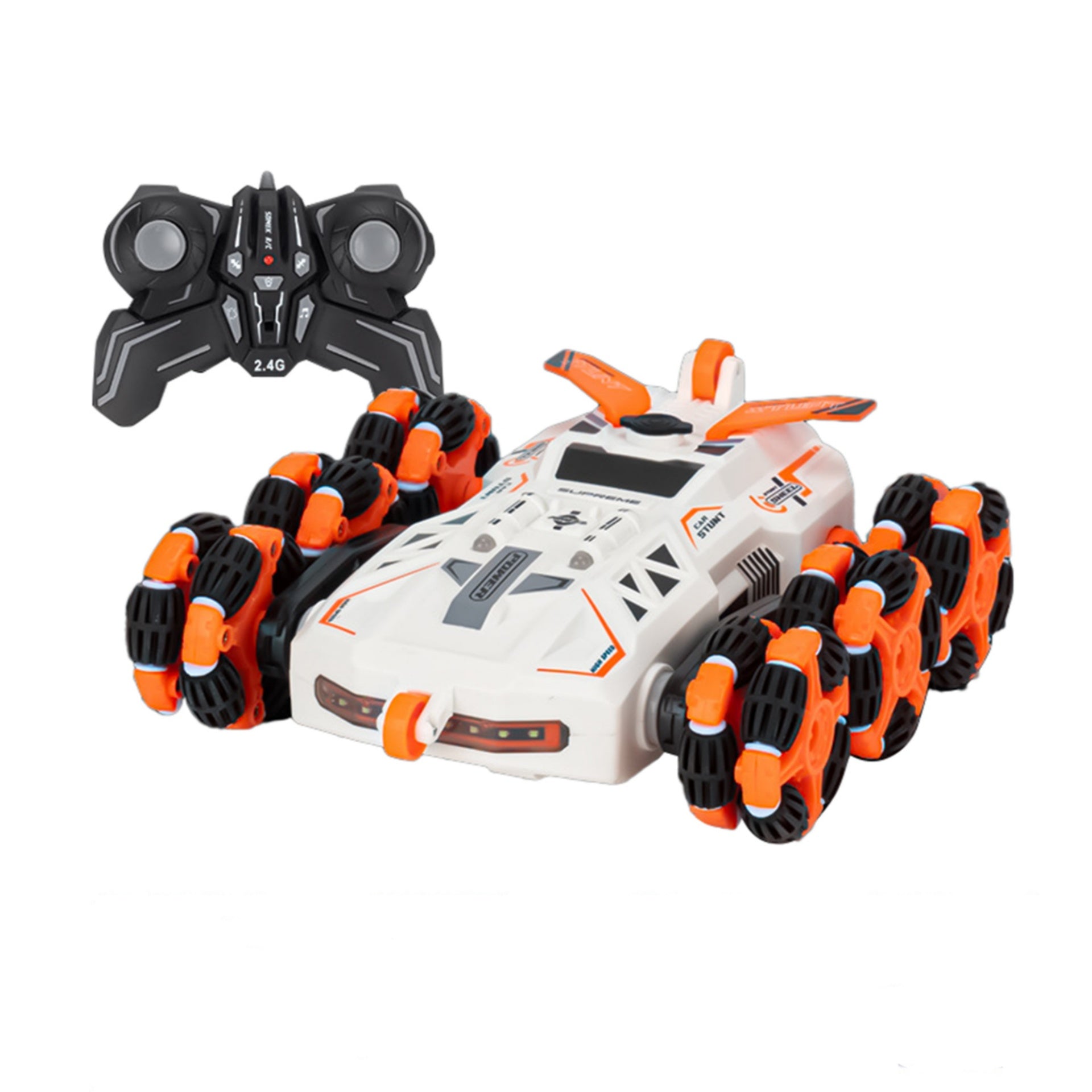 - --Stunt RC Car: This 2.4G 6-wheeled stunt vehicle offers an exhilarating remote-controlled twist deformation, stunning omnidirectional driving, and an array of impressive features for an exciting driving experience.