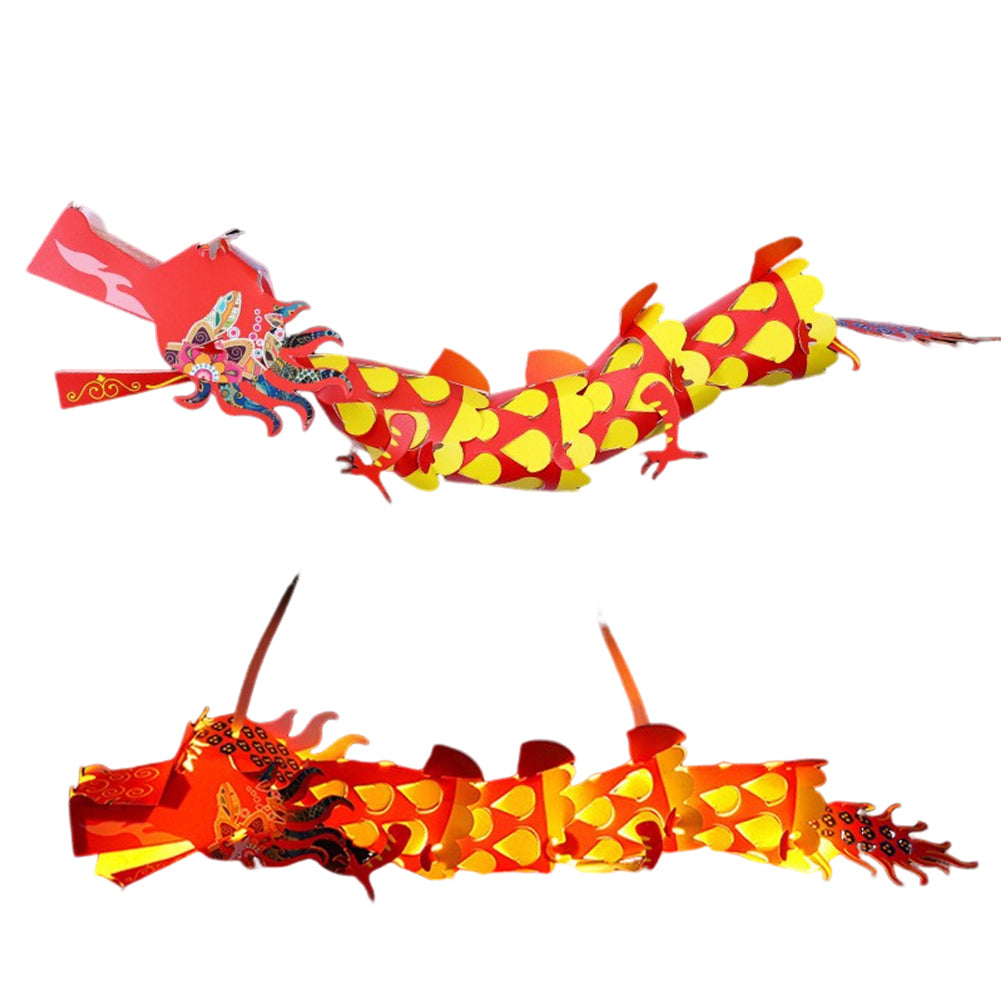 Chinese New Year Dragon Lanterns, Cartoon Dragon Dance Handmade DIY Paper Lantern Chinese Spring Festival Traditional Decoration For Boys Girls Gifts red