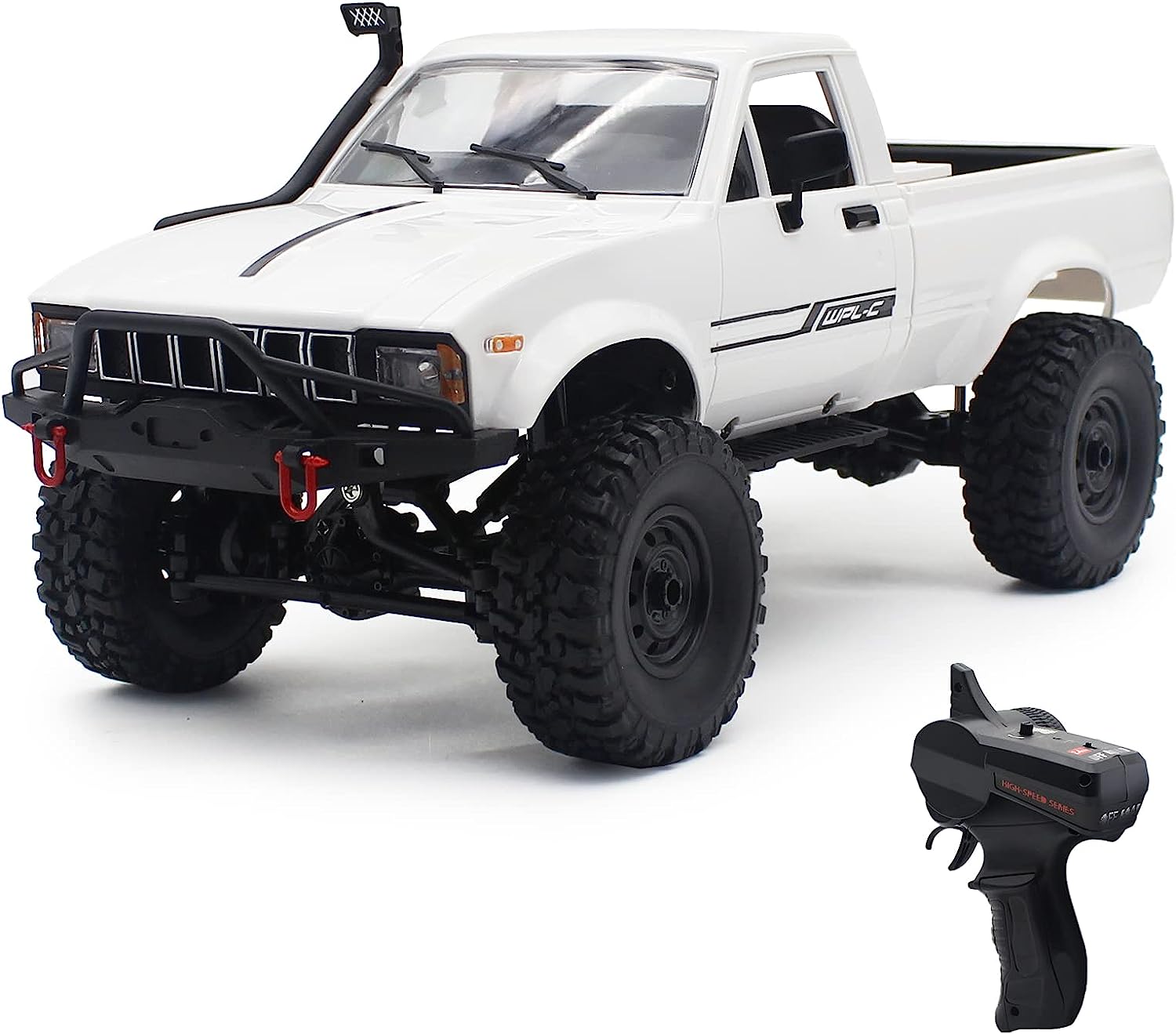 - --Realistic Offroad Experience: The WPL C24 truck, in 1/16 scale, offers control for forward/backward, left/right turns, and fine tuning, with detailed features like rearview mirrors, wipers, and a removable truck rear bucket.