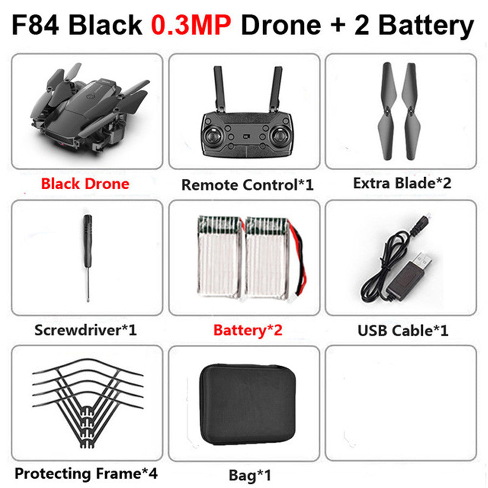 F84 Quadcopter Wireless RC Drone With 4K/5MP/0.3MP HD Camera WiFi FPV Helicopter Foldable Airplane For Children Gift Toy black_0.3MP 2B