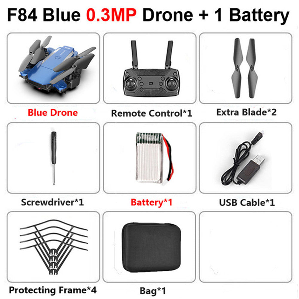 F84 Quadcopter Wireless RC Drone With 4K/5MP/0.3MP HD Camera WiFi FPV Helicopter Foldable Airplane For Children Gift Toy blue_0.3MP 1B