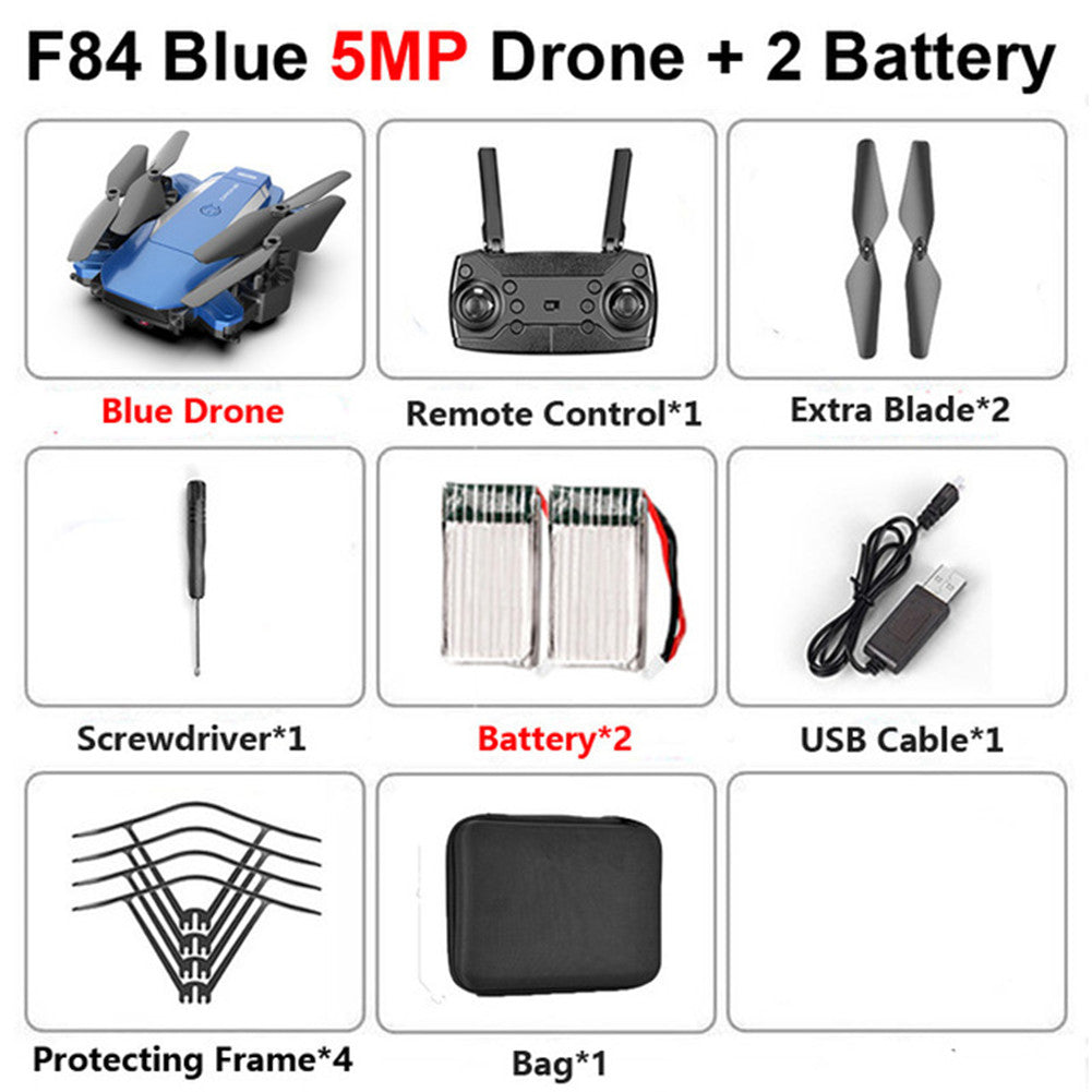 F84 Quadcopter Wireless RC Drone With 4K/5MP/0.3MP HD Camera WiFi FPV Helicopter Foldable Airplane For Children Gift Toy blue_5MP 2B