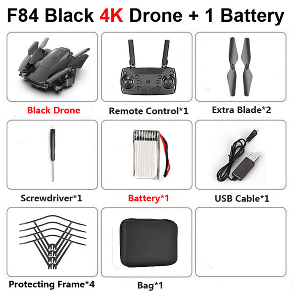 F84 Quadcopter Wireless RC Drone With 4K/5MP/0.3MP HD Camera WiFi FPV Helicopter Foldable Airplane For Children Gift Toy black_4K 1B