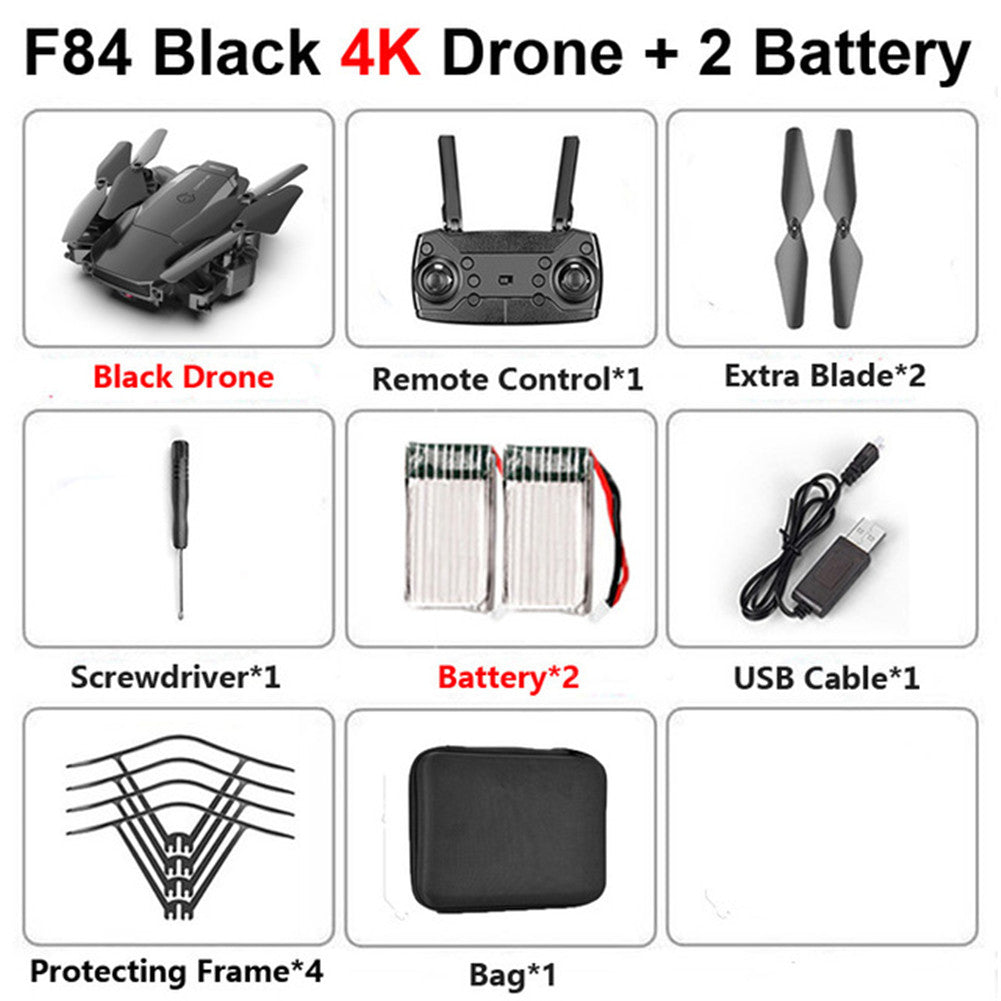 F84 Quadcopter Wireless RC Drone With 4K/5MP/0.3MP HD Camera WiFi FPV Helicopter Foldable Airplane For Children Gift Toy black_4K 2B