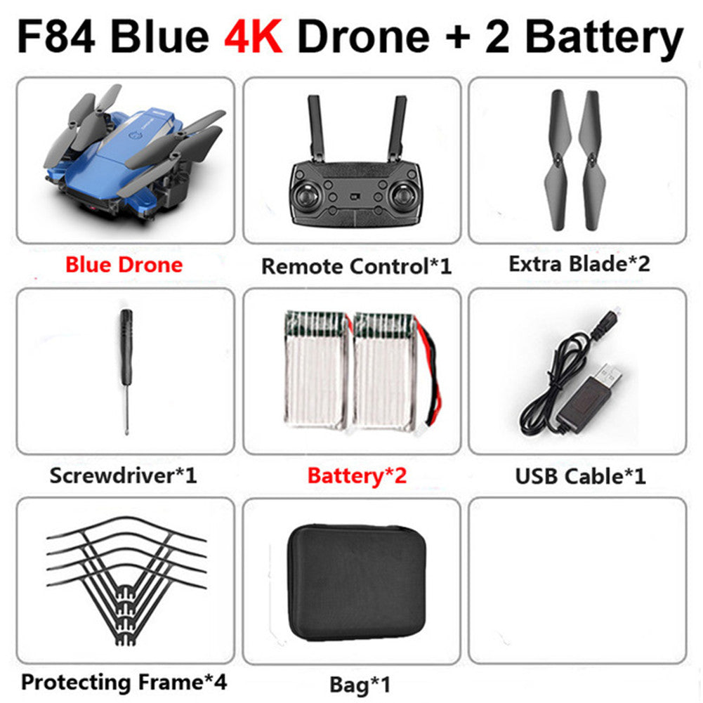 F84 Quadcopter Wireless RC Drone With 4K/5MP/0.3MP HD Camera WiFi FPV Helicopter Foldable Airplane For Children Gift Toy blue_4K 2B